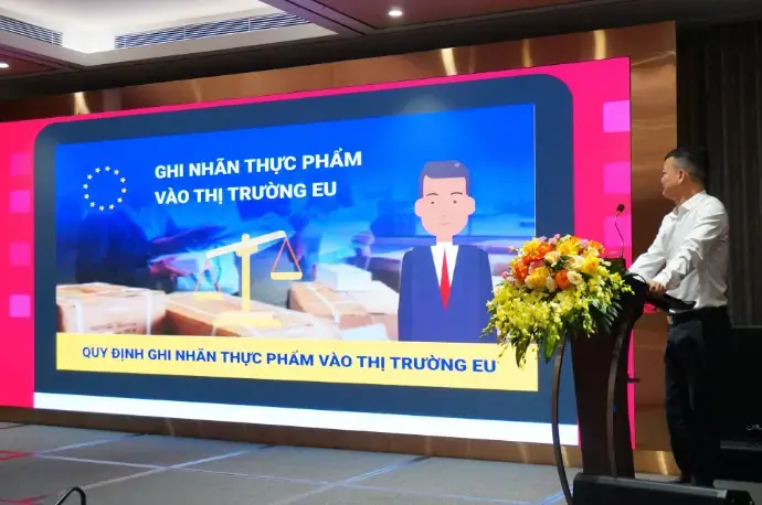 Ông cho biết, ghi nhãn thực phẩm là một trong những rào cản lớn đối với doanh nghiệp Việt Nam khi xuất khẩu sang thị trường EU, do hệ thống quy định phức tạp, thường xuyên cập nhật và khó tiếp cận đối với doanh nghiệp nhỏ và vừa. Vì vậy, việc ứng dụng chuyển đổi số và AI cần tập trung vào các bài toán tuân thủ cụ thể, giúp doanh nghiệp hiểu đúng và áp dụng đúng quy định.
