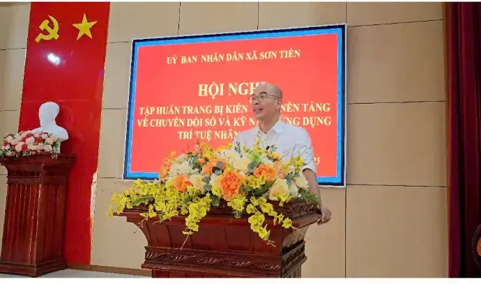 Dưới sự dẫn dắt của diễn giả Trần Nguyên Cát, hội nghị đã trang bị cho các cán bộ xã Sơn Tiến những kiến thức cốt lõi về chuyển đổi số và AI thông qua một chương trình đào tạo bài bản, kết hợp giữa lý thuyết và thực hành. Nội dung chương trình bao gồm tổng quan về AI với các ví dụ thực tế, ứng dụng AI trong quản lý hành chính để tối ưu hóa công việc, và các giải pháp AI cho nông nghiệp thông minh như phân tích dữ liệu và dự báo thời tiết.