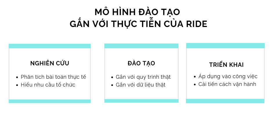 Cách tiếp cận đào tạo của RIDE được xây dựng theo mô hình gắn chặt giữa nghiên cứu, đào tạo và triển khai thực tế: