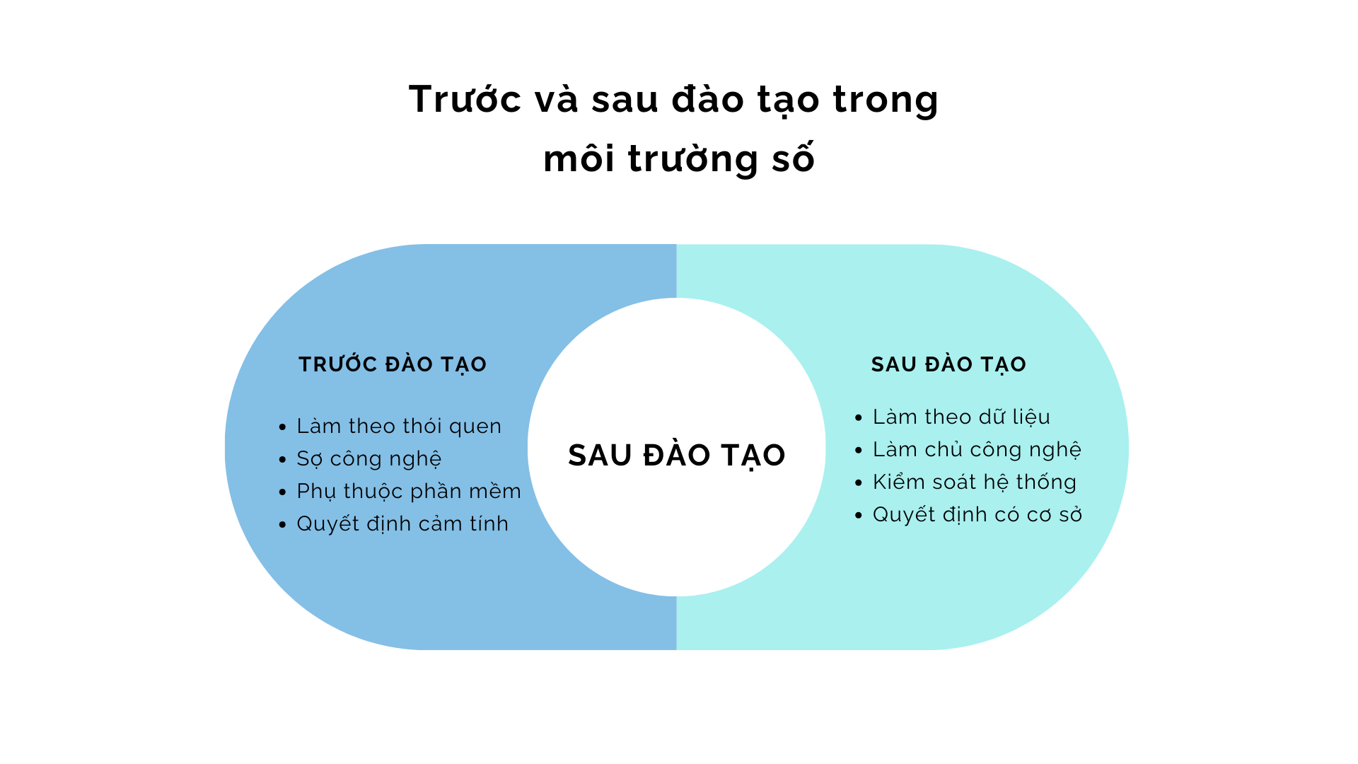 Đào tạo giúp tổ chức tạo ra ngôn ngữ chung về chuyển đổi số. Khi mọi người hiểu vì sao phải thay đổi và thay đổi để đạt mục tiêu gì, họ sẽ chủ động hơn trong việc học và áp dụng cái mới. Đào tạo cũng giúp lãnh đạo và quản lý nhìn rõ vai trò của mình trong môi trường số, từ đó ra quyết định phù hợp hơn với dữ liệu và thực tế vận hành. Thay vì chỉ dựa vào kinh nghiệm cá nhân, quyết định dần được hỗ trợ bởi thông tin và bằng chứng cụ thể.